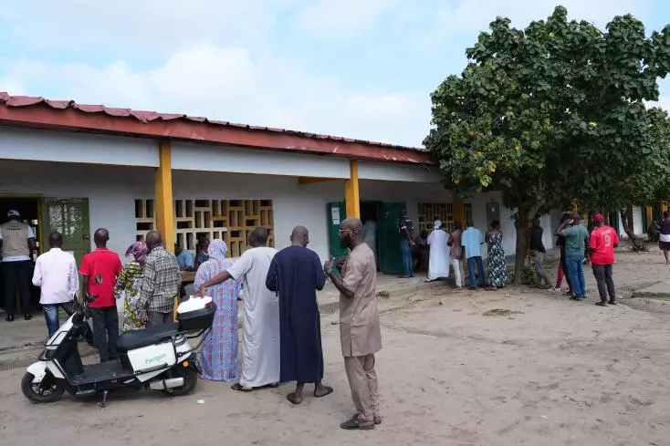 Des électeurs devant un bureau de vote en Côte d'Ivoire.