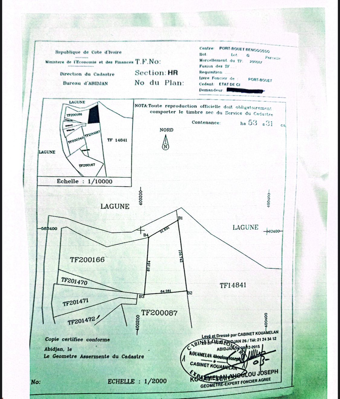 Un terrain Clôturé de 5331m2 pieds dans l'eau dans la zone de Port-Bouet.